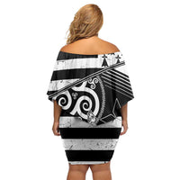 Brittany Ermine Celtic Off Shoulder Short Dress Black Celtic Triskels LT18