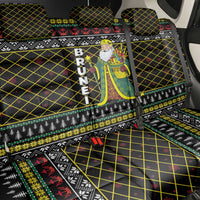 Brunei Christmas Back Car Seat Cover with Traditional Santa Gift Basket and Black Yellow Red Holiday Pattern