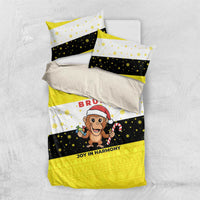 Brunei Christmas Bedding Set with Cartoon Monkey Santa Hat Candy Cane and Yellow Black Flag Pattern