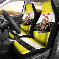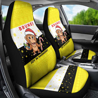 Brunei Christmas Car Seat Cover with Cartoon Monkey Santa Hat Candy Cane and Yellow Black Flag Pattern