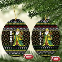 Brunei Christmas Ceramic Ornament with Traditional Santa Gift Basket and Black Yellow Red Holiday Pattern