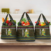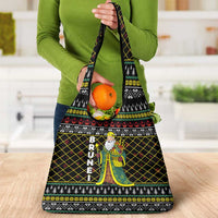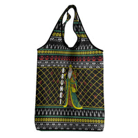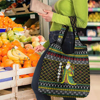 Brunei Christmas Grocery Bag with Traditional Santa Gift Basket and Black Yellow Red Holiday Pattern TS04