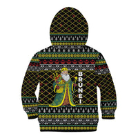 Brunei Christmas Kid Hoodie with Traditional Santa Gift Basket and Black Yellow Red Holiday Pattern