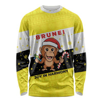 Brunei Christmas Long Sleeve Shirt with Cartoon Monkey Santa Hat Candy Cane and Yellow Black Flag Pattern
