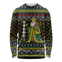 Brunei Christmas Long Sleeve Shirt with Traditional Santa Gift Basket and Black Yellow Red Holiday Pattern