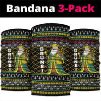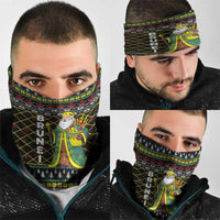 Brunei Christmas Neck Gaiter with Traditional Santa Gift Basket and Black Yellow Red Holiday Pattern