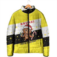 Ready to upgrade your cold-weather wardrobe? Get the Brunei Christmas Padded Jacket with Cartoon Monkey Santa Hat Candy Cane and Yellow Black Flag Pattern by Wonder Print Shop now and enjoy reliable warmth with everyday style.