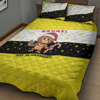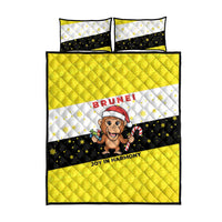 Brunei Christmas Quilt Bed Set with Cartoon Monkey Santa Hat Candy Cane and Yellow Black Flag Pattern TS04