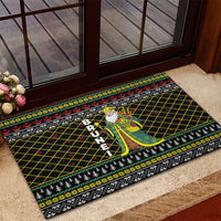 Brunei Christmas Rubber Doormat with Traditional Santa Gift Basket and Black Yellow Red Holiday Pattern