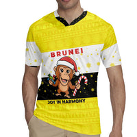 Brunei Christmas Rugby Jersey with Cartoon Monkey Santa Hat Candy Cane and Yellow Black Flag Pattern