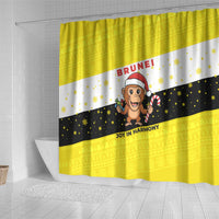 Brunei Christmas Shower Curtain with Cartoon Monkey Santa Hat Candy Cane and Yellow Black Flag Pattern