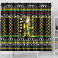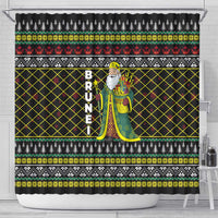 Brunei Christmas Shower Curtain with Traditional Santa Gift Basket and Black Yellow Red Holiday Pattern TS04