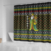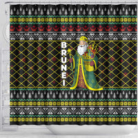 Brunei Christmas Shower Curtain with Traditional Santa Gift Basket and Black Yellow Red Holiday Pattern
