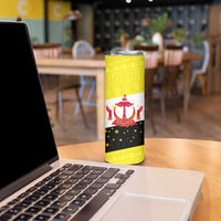 Brunei Christmas Skinny Tumbler with Cartoon Monkey Santa Hat Candy Cane and Yellow Black Flag Pattern