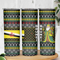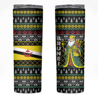 Brunei Christmas Skinny Tumbler with Traditional Santa Gift Basket and Black Yellow Red Holiday Pattern