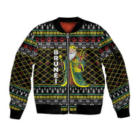 Brunei Christmas Sleeve Zip Bomber Jacket with Traditional Santa Gift Basket and Black Yellow Red Holiday Pattern TS04