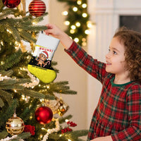 Bring Holiday Cheer with Wonder Print Shop Brunei Christmas Stocking with Cartoon Monkey Santa Hat Candy Cane and Yellow Black Flag Pattern
