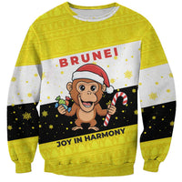 Brunei Christmas Sweatshirt with Cartoon Monkey Santa Hat Candy Cane and Yellow Black Flag Pattern