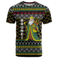 Brunei Christmas T Shirt with Traditional Santa Gift Basket and Black Yellow Red Holiday Pattern