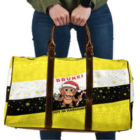 Brunei Christmas Travel Bag with Cartoon Monkey Santa Hat Candy Cane and Yellow Black Flag Pattern TS04