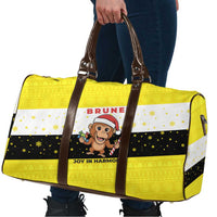 Brunei Christmas Travel Bag with Cartoon Monkey Santa Hat Candy Cane and Yellow Black Flag Pattern