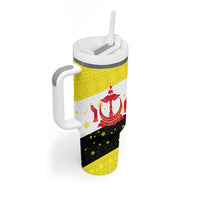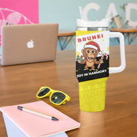 Brunei Christmas Tumbler With Handle with Cartoon Monkey Santa Hat Candy Cane and Yellow Black Flag Pattern