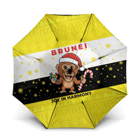 Get your Brunei Christmas Umbrella with Cartoon Monkey Santa Hat Candy Cane and Yellow Black Flag Pattern by Wonder Print Shop today and enjoy protection with a personalized touch wherever you go.