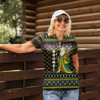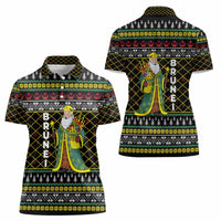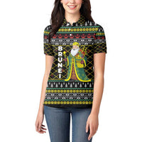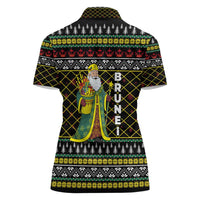Brunei Christmas Women Polo Shirt with Traditional Santa Gift Basket and Black Yellow Red Holiday Pattern TS04