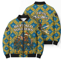 Make every cold day a stylish one with the Buffalo Soldiers Christmas Bomber Puffer Jacket with Blue Yellow Plaid Parade Illustration Design from Wonder Print Shop. Crafted for versatility, this bomber puffer jacket combines classic design with modern functionality. Whether you're commuting, traveling, or heading out with friends, it's the outerwear staple that keeps you looking sharp and feeling warm.