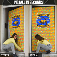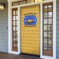 Transform your home with the Buffalo Soldiers Christmas Door Cover with Yellow Cartoon Buffalo Santa Hat Design by Wonder Print Shop. Don’t miss your chance to bring vibrant design and quality craftsmanship to your doorway.