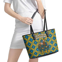 Buffalo Soldiers Christmas Leather Tote Bag with Blue Yellow Plaid Parade Illustration Design