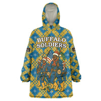 Buffalo Soldiers Christmas Wearable Blanket Hoodie with Blue Yellow Plaid Parade Illustration Design