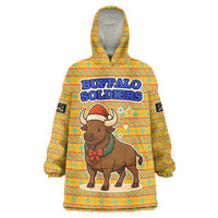 Buffalo Soldiers Christmas Wearable Blanket Hoodie with Yellow Cartoon Buffalo Santa Hat Design