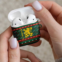 Bulgaria Christmas AirPods Case with Green-Red Theme, Golden Lion, and Santa Sleigh Motif TS04