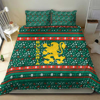 Bulgaria Christmas Bedding Set with Green-Red Theme, Golden Lion, and Santa Sleigh Motif
