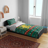 Bulgaria Christmas Bedding Set with Green-Red Theme, Golden Lion, and Santa Sleigh Motif TS04