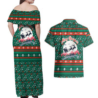 Bulgaria Christmas Couples Matching Off Shoulder Maxi Dress and Hawaiian Shirt with Green-Red Theme, Golden Lion, and Santa Sleigh Motif TS04