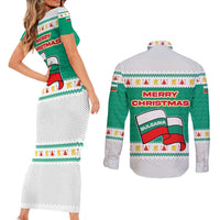 Bulgaria Christmas Couples Matching Short Sleeve Bodycon Dress and Long Sleeve Button Shirt with Green-White Theme, Coat of Arms, and National Flag Motif TS04