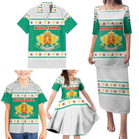 Bulgaria Christmas Family Matching Puletasi and Hawaiian Shirt with Green-White Theme, Coat of Arms, and National Flag Motif TS04