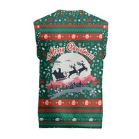 Upgrade your layering game with the Bulgaria Christmas Knitted V-Neck Vest with Green-Red Theme, Golden Lion, and Santa Sleigh Motif by Wonder Print Shop—a timeless vest designed for versatility and comfort.