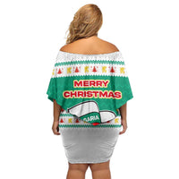 Bulgaria Christmas Off Shoulder Short Dress with Green-White Theme, Coat of Arms, and National Flag Motif