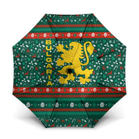 Bulgaria Christmas Umbrella with Green-Red Theme, Golden Lion, and Santa Sleigh Motif TS04