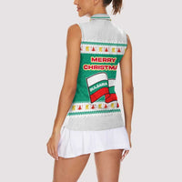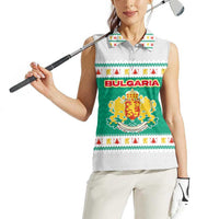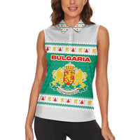 Bulgaria Christmas Women Sleeveless Polo Shirt with Green-White Theme, Coat of Arms, and National Flag Motif TS04