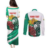 Bulgaria Couples Matching Puletasi and Long Sleeve Button Shirt Coat of Arms Lion with Roses