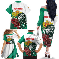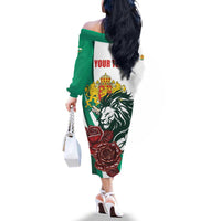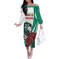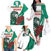 Bulgaria Family Matching Off The Shoulder Long Sleeve Dress and Hawaiian Shirt Coat of Arms Lion with Roses