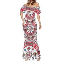 Bulgaria Folk Art Mermaid Dress with Traditional Embroidery and Floral Motifs