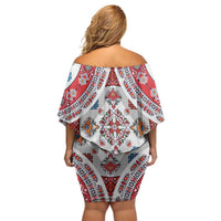 Bulgaria Folk Art Off Shoulder Short Dress with Traditional Embroidery and Floral Motifs
