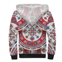 Bulgaria Folk Art Sherpa Hoodie with Traditional Embroidery and Floral Motifs