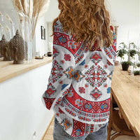 Bulgaria Folk Art Women Casual Shirt with Traditional Embroidery and Floral Motifs