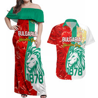 Bulgaria Liberation Day Couples Matching Off Shoulder Maxi Dress and Hawaiian Shirt Lion With Rose Flag Style